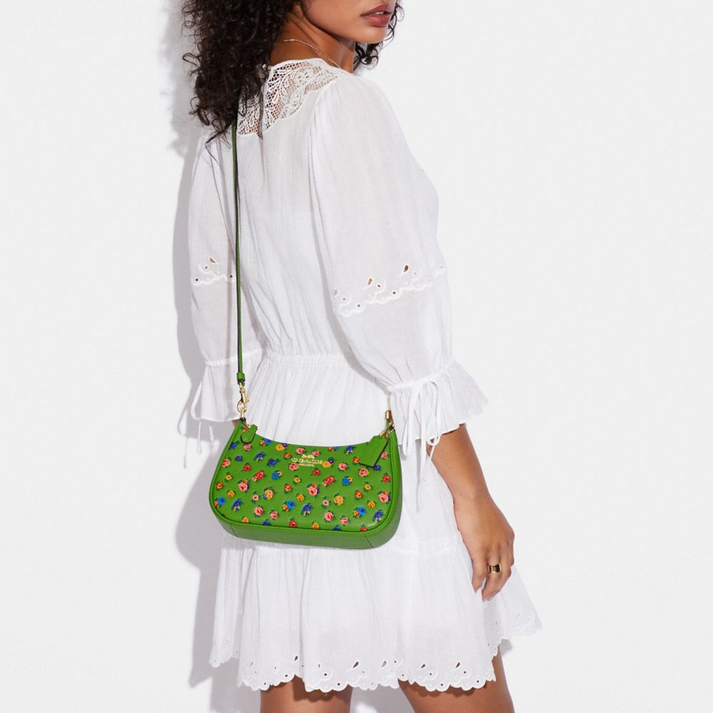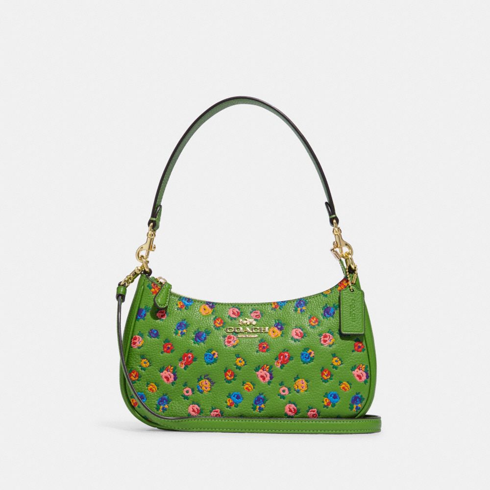 COACH FACTORY OUTLET PRICE CHART - CA616 - TERI SHOULDER BAG WITH MINI VINTAGE ROSE PRINT - IM/NEON GREEN MULTI