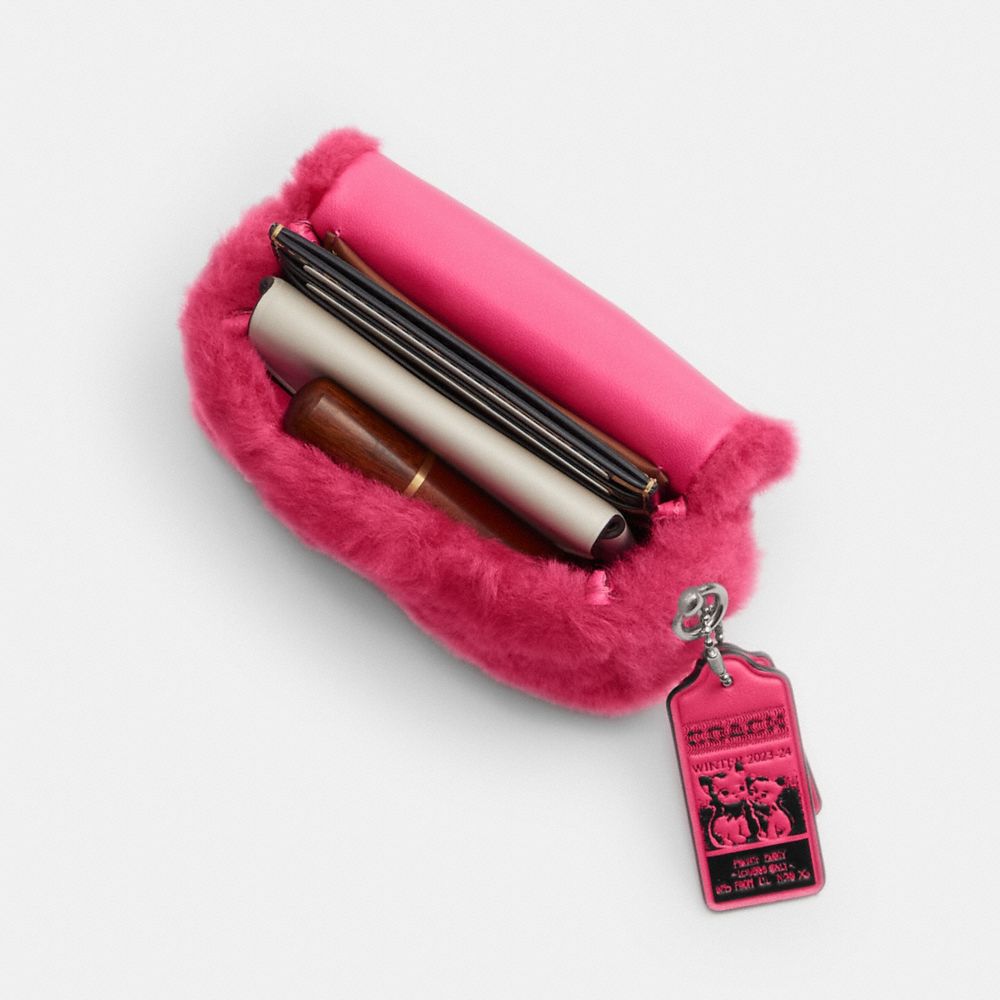 | Shearling and smooth leather | Zip and multifunction pockets | Snap closure, leather lining | Detachable handle with 2 3/4" drop | Detachable strap with 21 1/2" drop for shoulder or crossbody wear | 5" (L) x 3" (H) x 1 3/4" (W)|Style No. CP940|