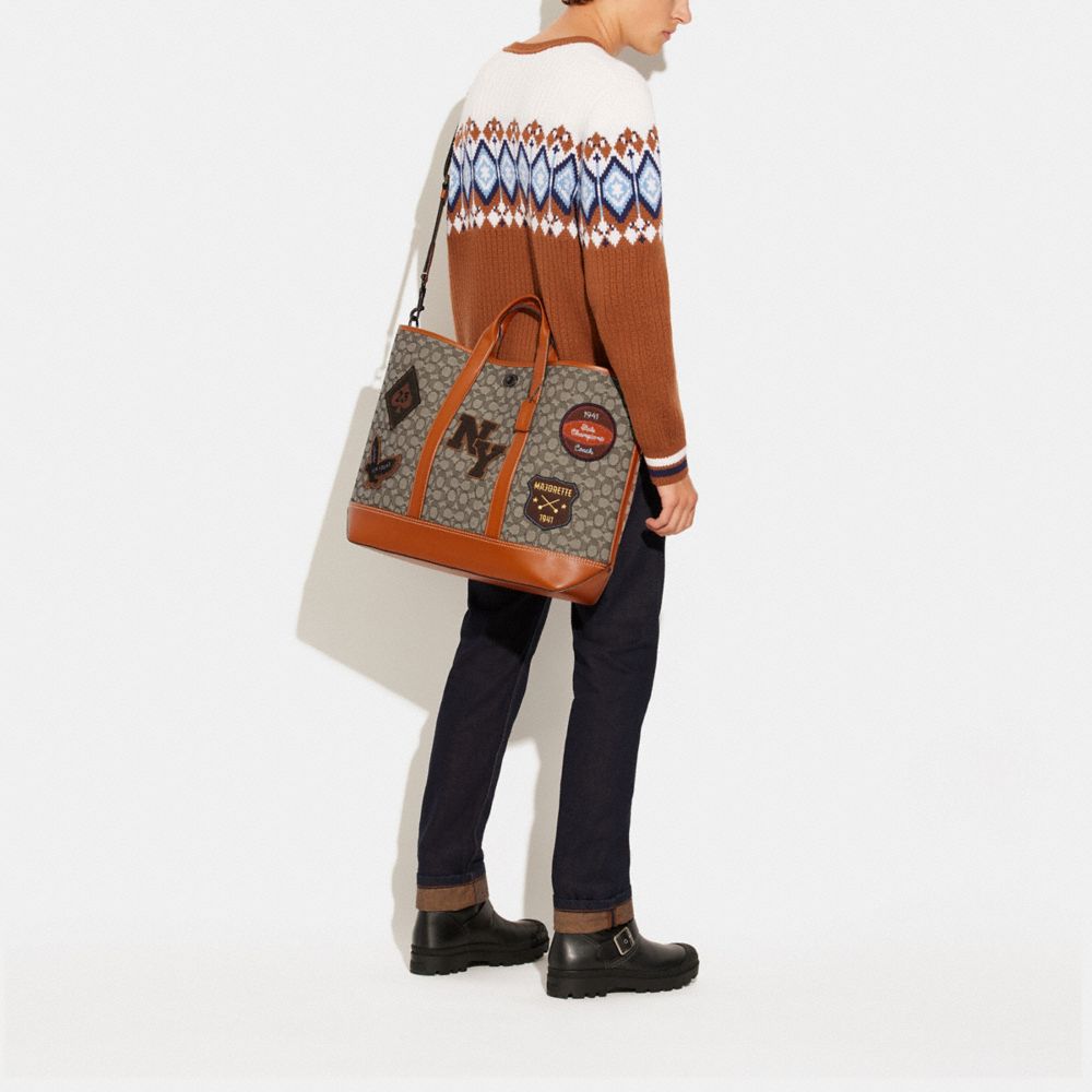 TOBY TURNLOCK TOTE IN SIGNATURE TEXTILE JACQUARD WITH VARSITY PATCHES (COACH CG206)