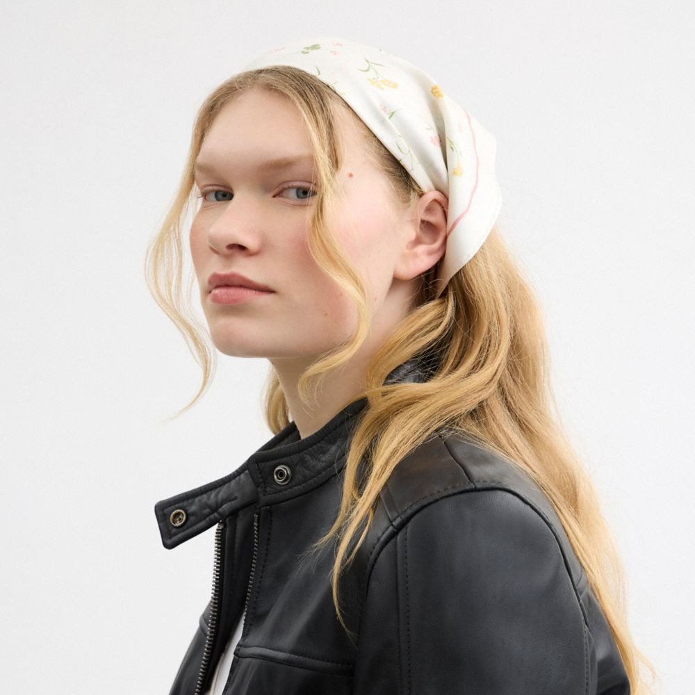 TOSSED FLORAL PRINT SILK DIAMOND SCARF (COACH CAP46)