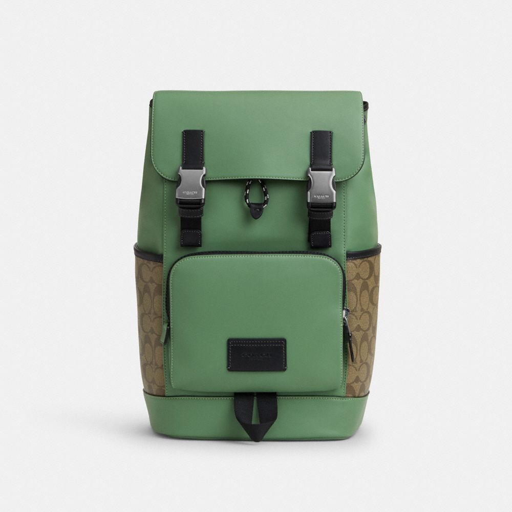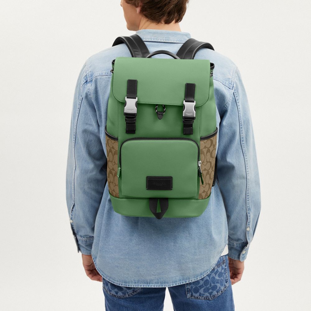 COACH FACTORY OUTLET PRICE CHART - CR258 - TRACK BACKPACK IN COLORBLOCK SIGNATURE CANVAS - SV/KHAKI/SOFT GREEN