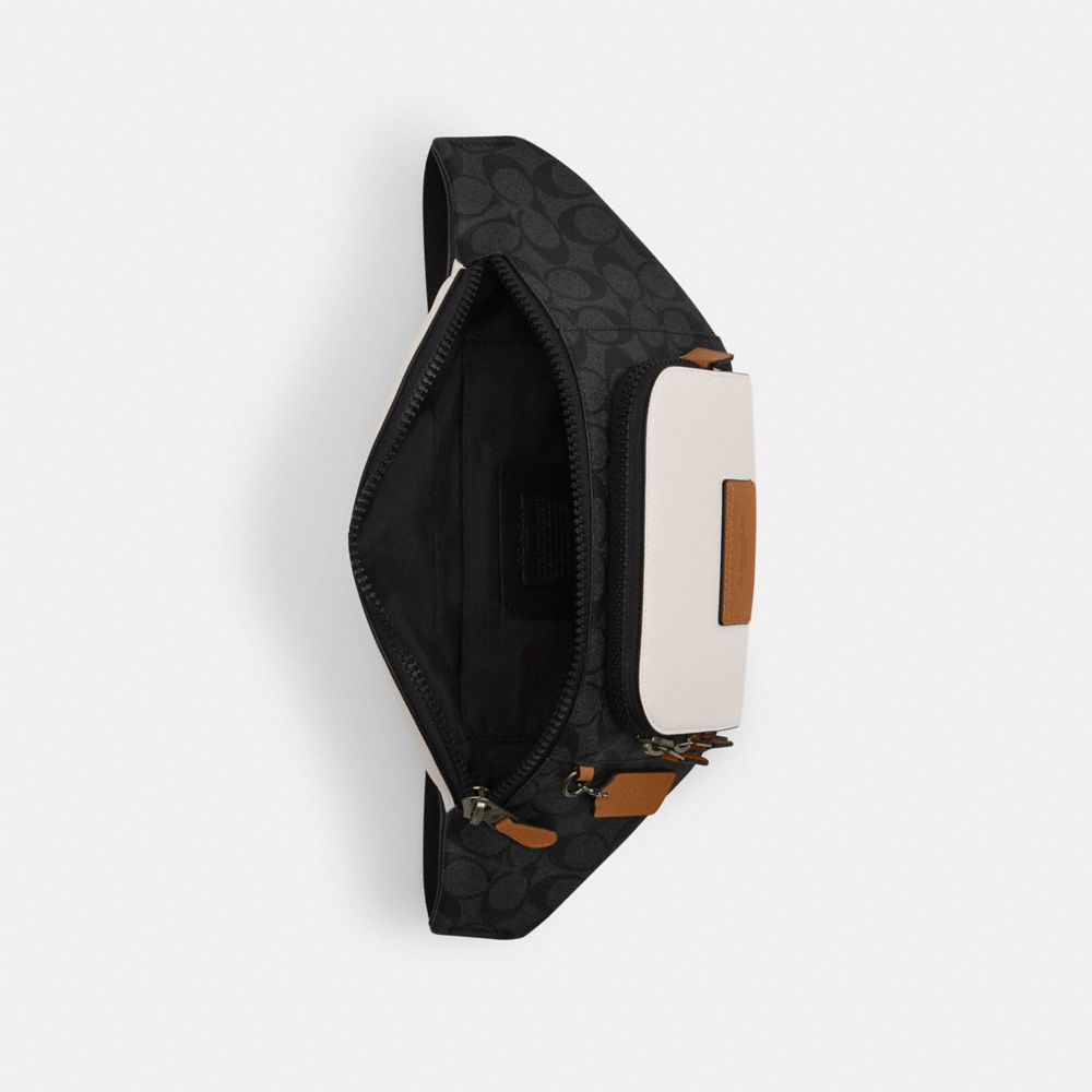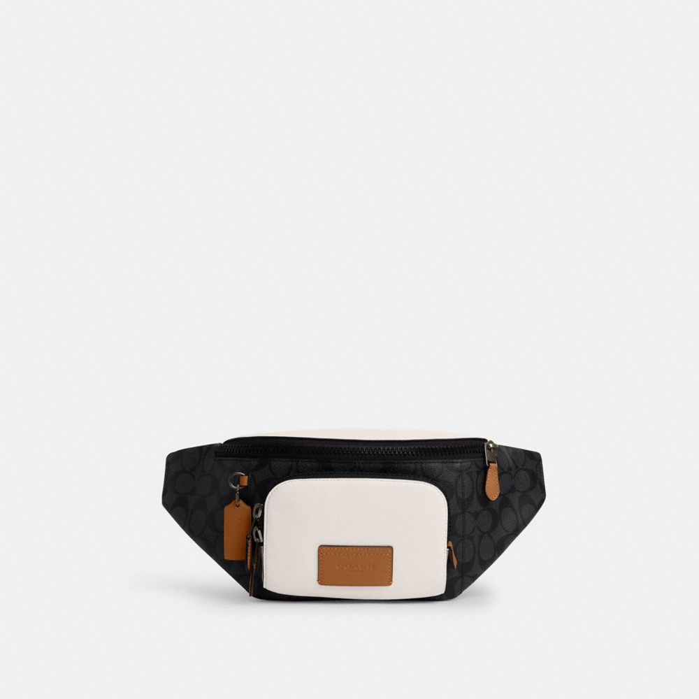 COACH FACTORY OUTLET PRICE CHART - CR262 - TRACK BELT BAG IN COLORBLOCK SIGNATURE CANVAS - BLACK ANTIQUE NICKEL/CHARCOAL/CHALK/LIGHT SADDLE