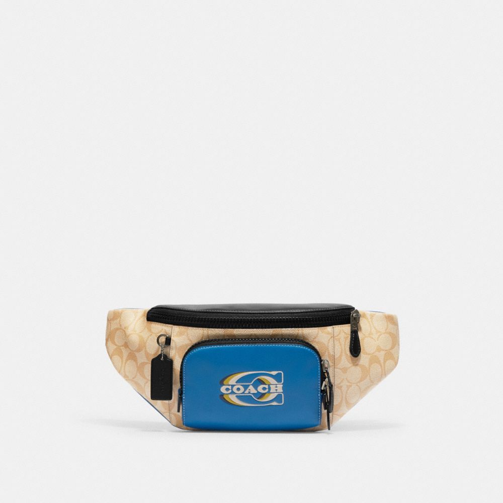 TRACK BELT BAG IN COLORBLOCK SIGNATURE CANVAS WITH COACH STAMP (COACH CH587)