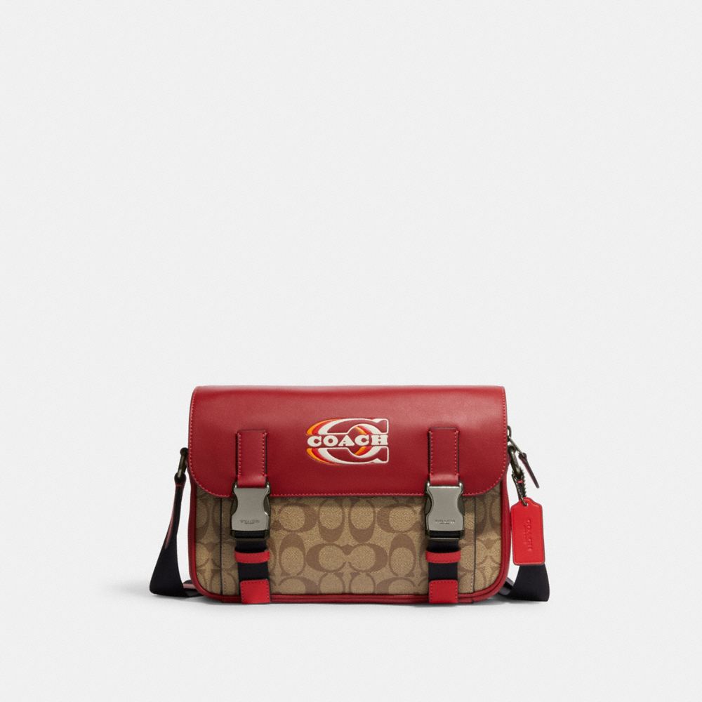 COACH FACTORY OUTLET PRICE CHART - CE873 - TRACK CROSSBODY IN COLORBLOCK SIGNATURE CANVAS WITH COACH STAMP - BLACK ANTIQUE NICKEL/1941 RED/KHAKI MULTI