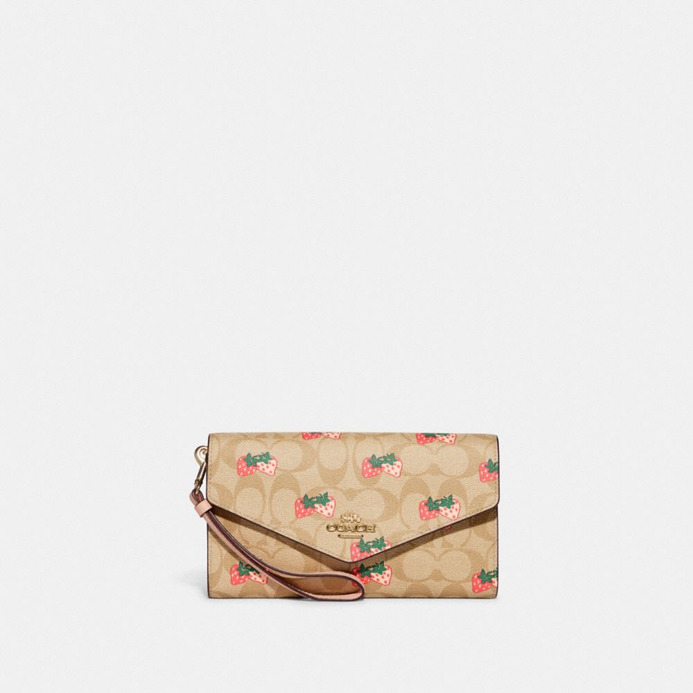 COACH FACTORY OUTLET PRICE CHART - CB609 - TRAVEL ENVELOPE WALLET IN SIGNATURE CANVAS WITH STRAWBERRY PRINT - GOLD/LIGHT KHAKI MULTI