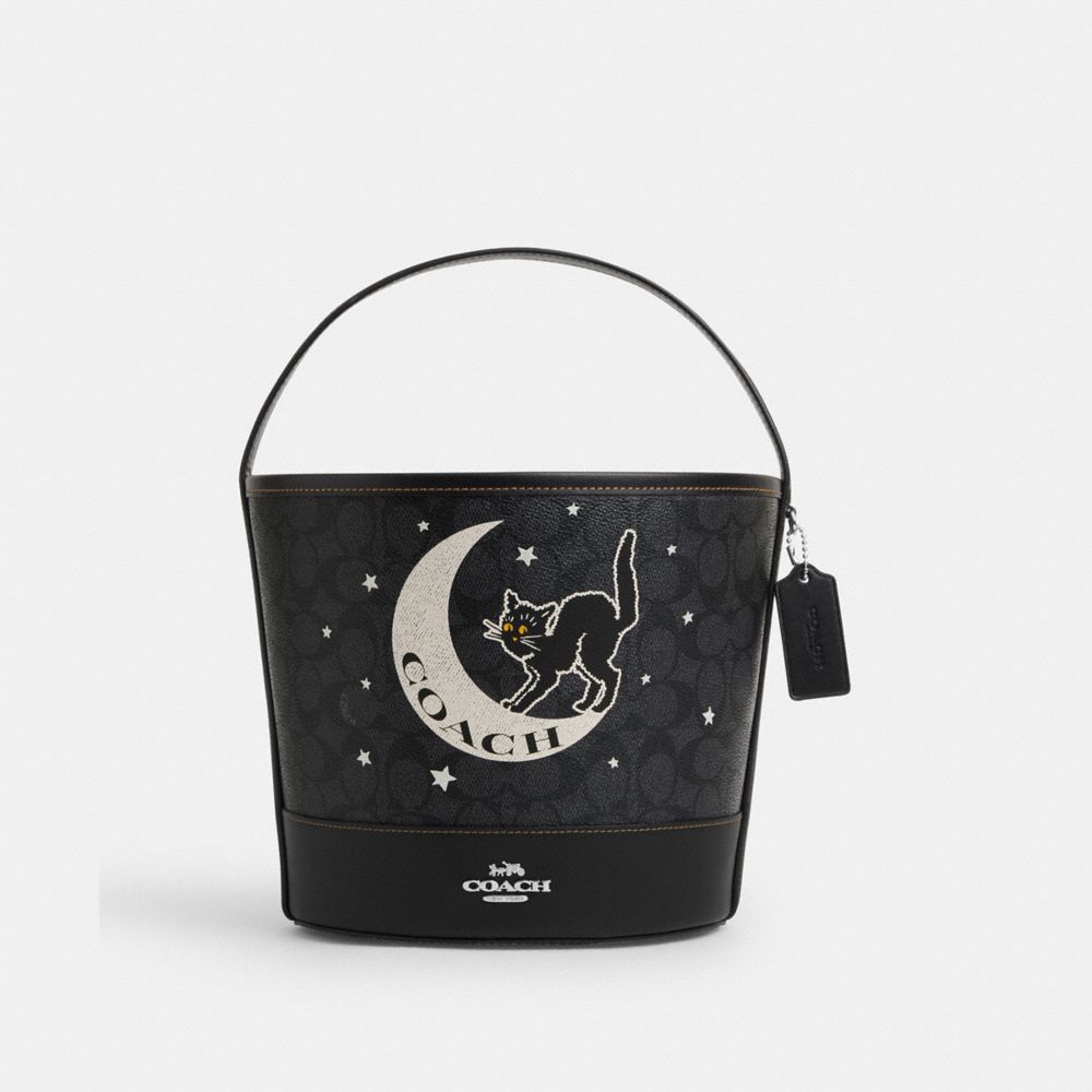 COACH FACTORY OUTLET PRICE CHART - CW536 - TRICK OR TREAT BUCKET IN SIGNATURE CANVAS WITH HALLOWEEN GRAPHIC - SILVER/CHARCOAL/BLACK MULTI