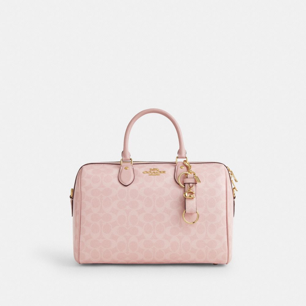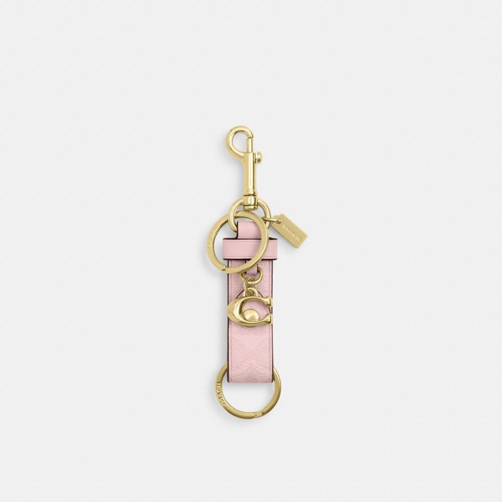 COACH FACTORY OUTLET PRICE CHART - CAU86 - TRIGGER SNAP BAG CHARM IN SIGNATURE CANVAS - GOLD/POWDER PINK