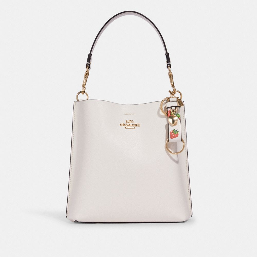 COACH FACTORY OUTLET PRICE CHART - CB613 - TRIGGER SNAP BAG CHARM WITH STRAWBERRY PRINT - GOLD/CHALK MULTI