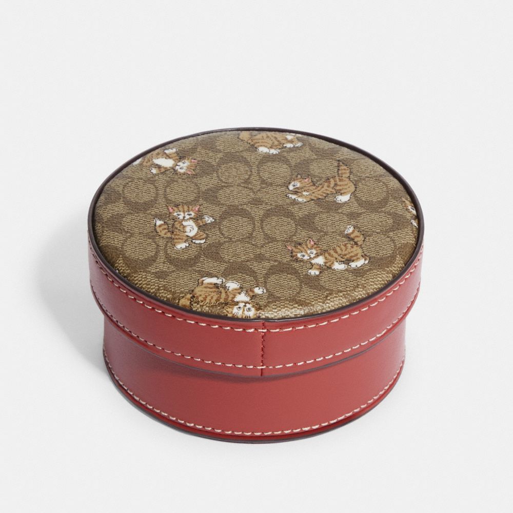 COACH FACTORY OUTLET PRICE CHART - CC471 - TRINKET BOX IN SIGNATURE CANVAS WITH DANCING KITTEN PRINT - GOLD/KHAKI MULTI