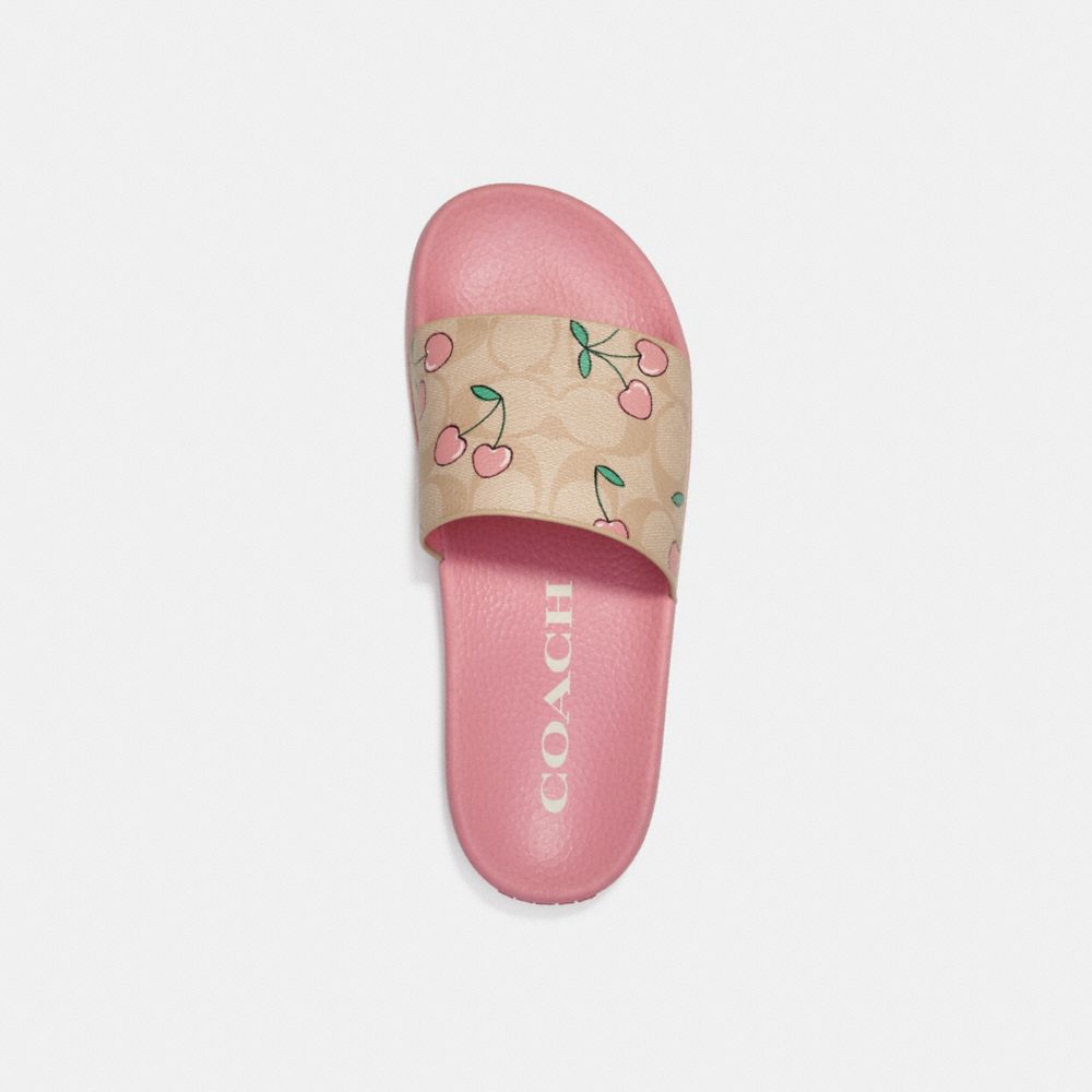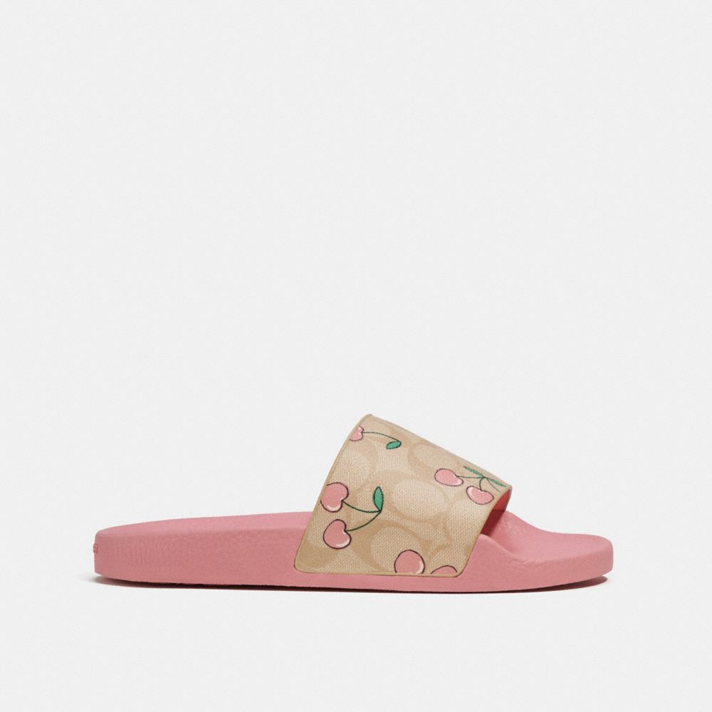 COACH FACTORY OUTLET PRICE CHART - CE497 - ULI SPORT SLIDE IN SIGNATURE CANVAS WITH HEART CHERRY PRINT - KHAKI/PINK