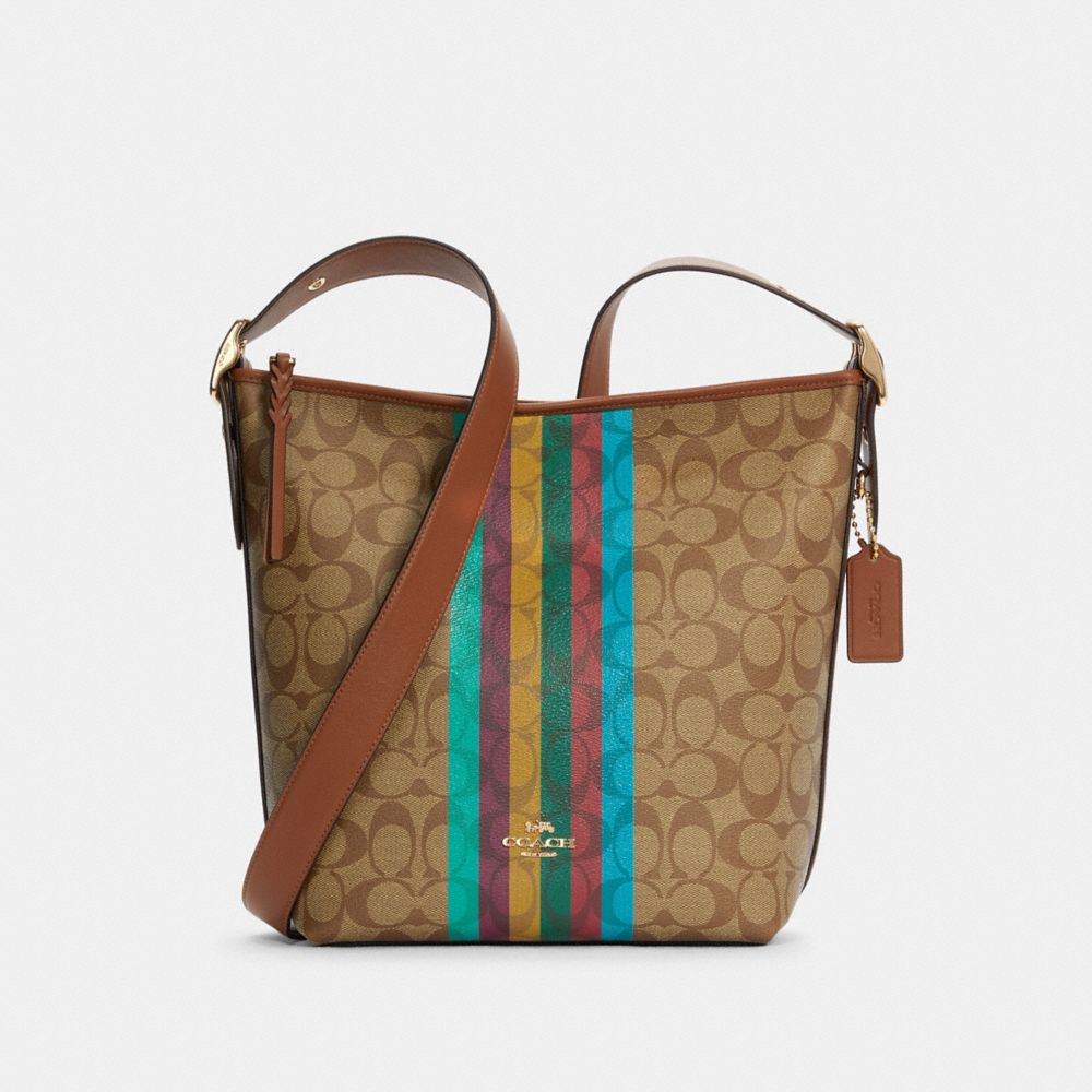 COACH FACTORY OUTLET PRICE CHART - C5641 - VAL DUFFLE IN SIGNATURE CANVAS WITH STRIPE - GOLD/KHAKI MULTI