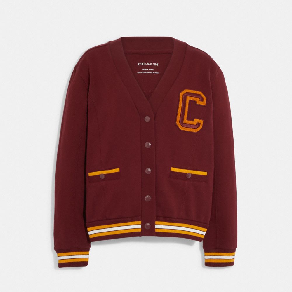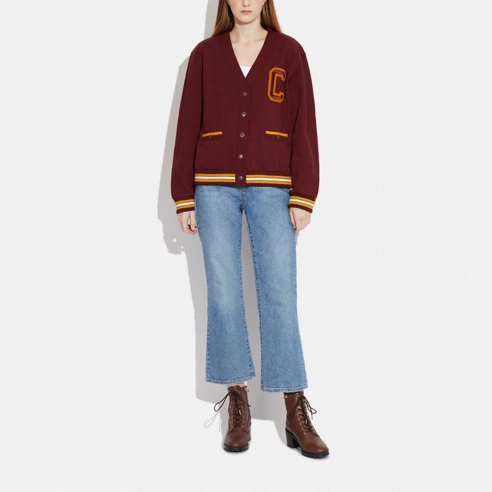 COACH FACTORY OUTLET PRICE CHART - CB584 - VARSITY LETTERMAN CARDIGAN - SANGRIA.