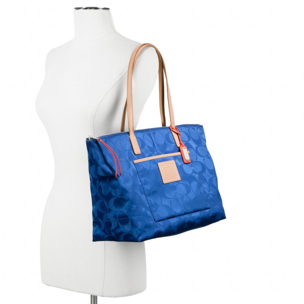 WEEKEND SIGNATURE NYLON EAST/WEST ZIP TOP TOTE (COACH F24862)