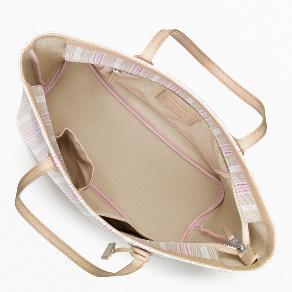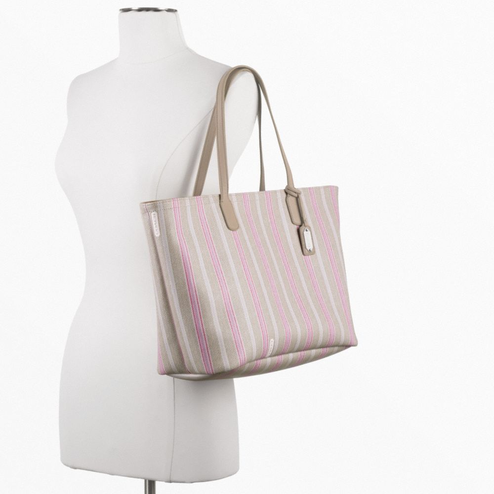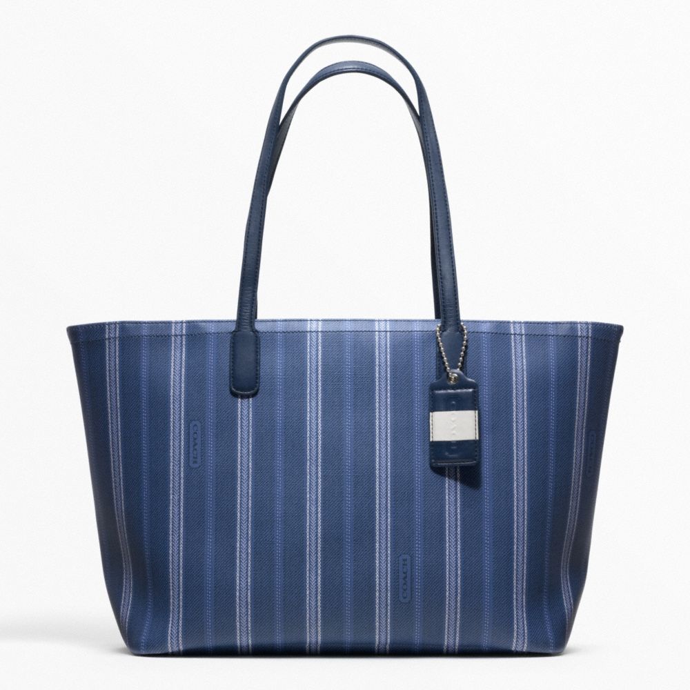 WEEKEND TICKING STRIPE ZIP TOP TOTE (COACH F23108)
