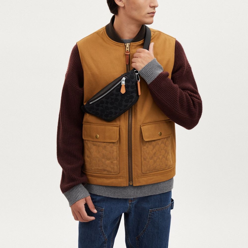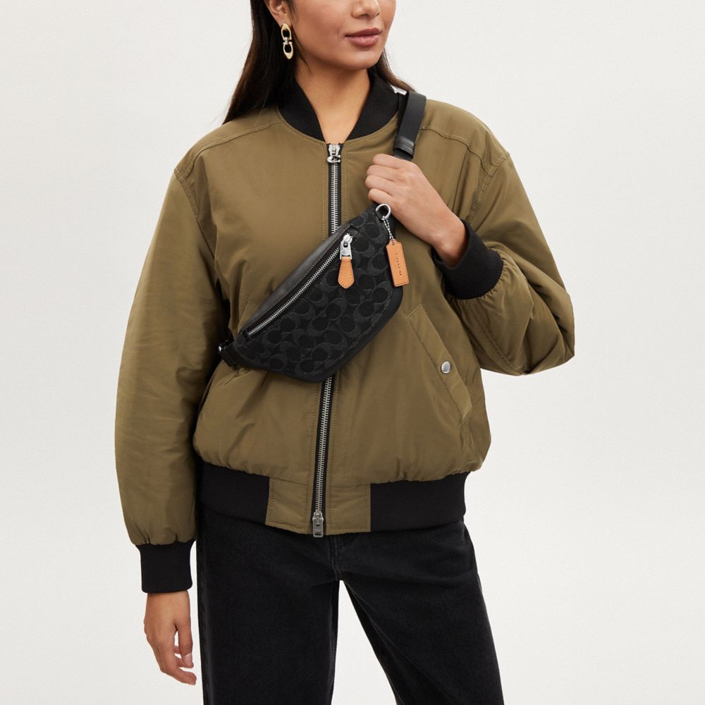 COACH FACTORY OUTLET PRICE CHART - CO918 - WARREN MINI BELT BAG IN SIGNATURE DENIM - SILVER/BLACK