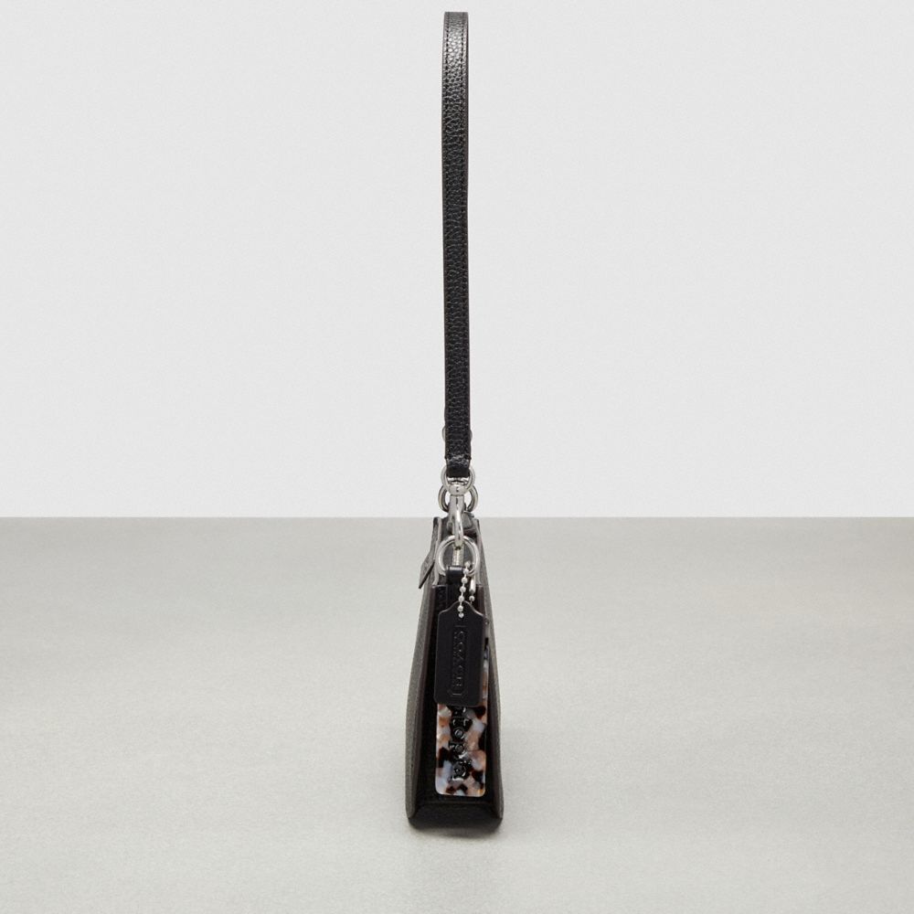 | Shell: Pebbled Coachtopia Leather (at least 50% recycled from leather fibers) | Lining: Coachtopia Leather (at least 50% recycled from leather fibers) | Strap: Pebbled Coachtopia Leather (at least 50% recycled from leather fibers) | Hangtag: 70% recycled acrylic plastic | Top zip closure | 3 Card slots inside | Short removable strap with 10 3/4" drop | 9" (L) x 1 3/4" (H) x 4 3/4" (W)