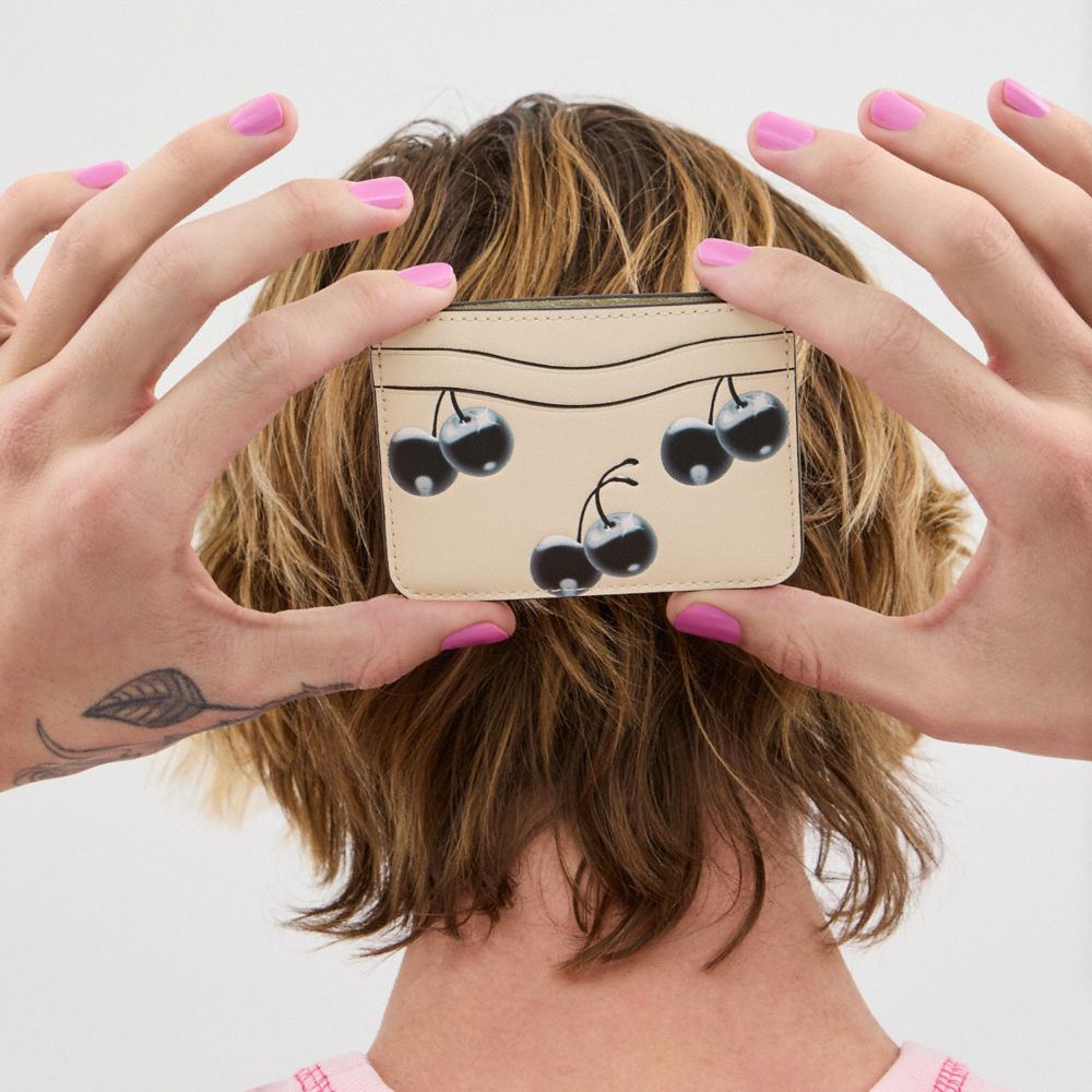 WAVY CARD CASE IN COACHTOPIA LEATHER WITH CHERRY PRINT (COACH CL767)