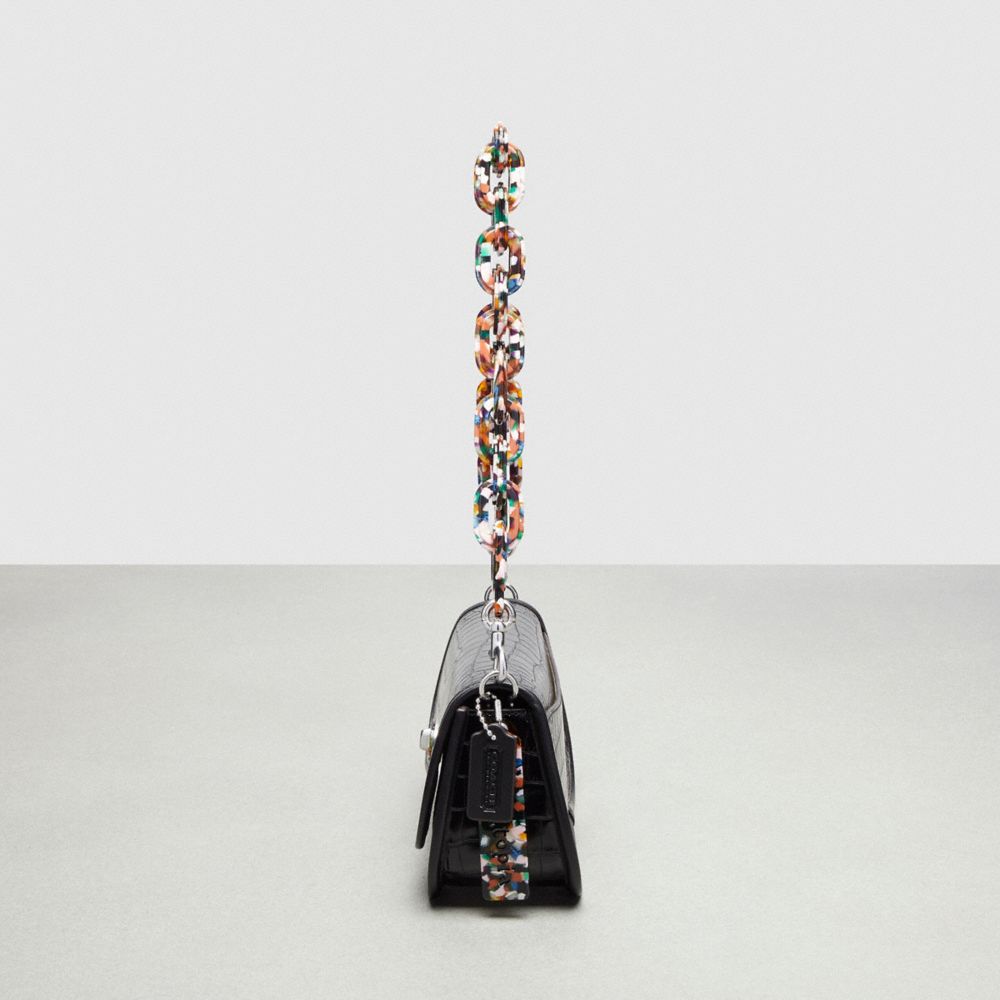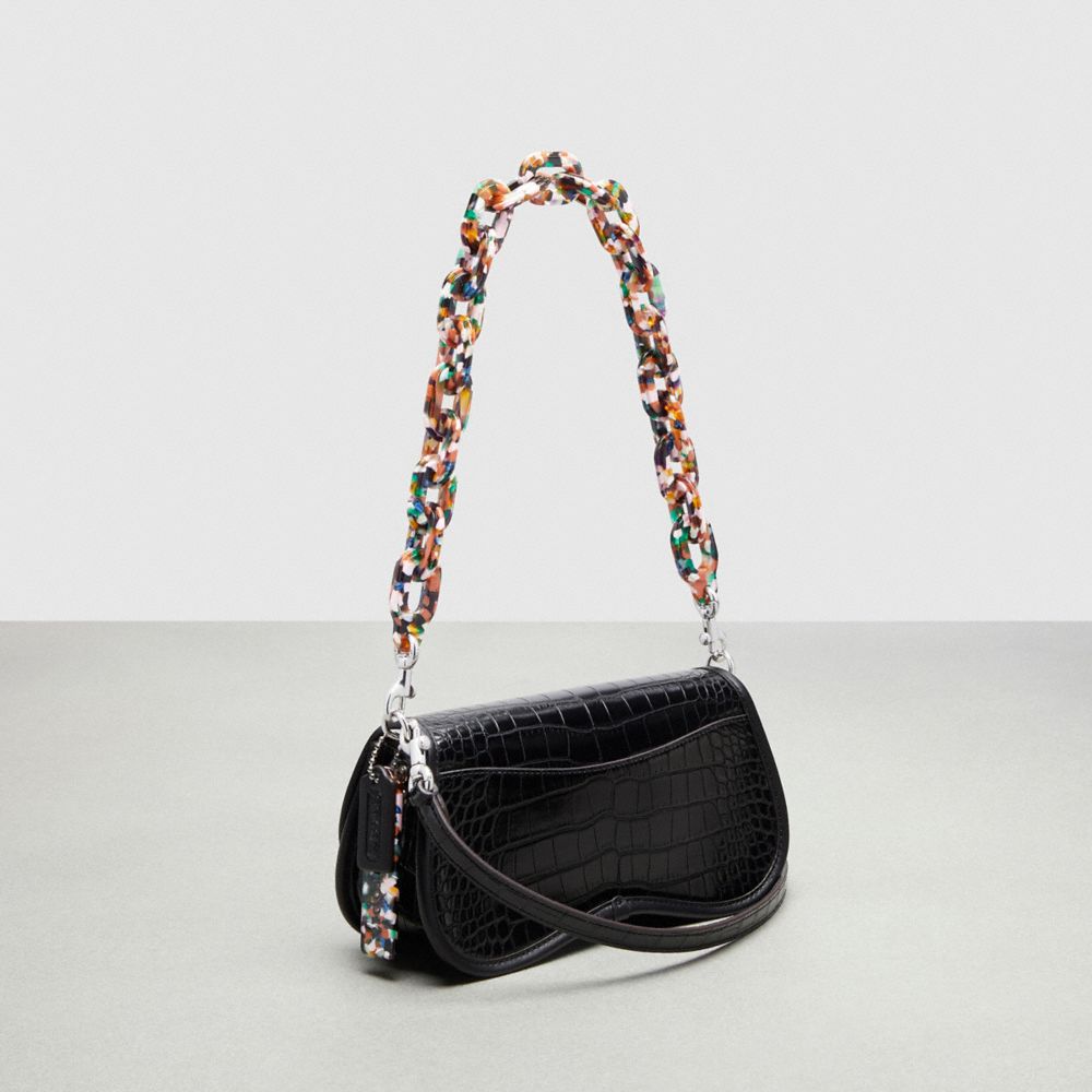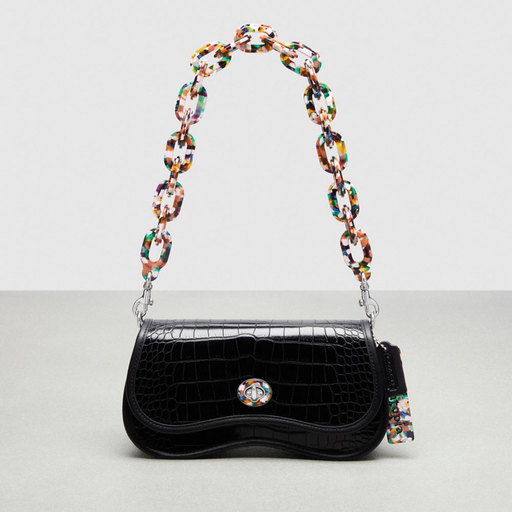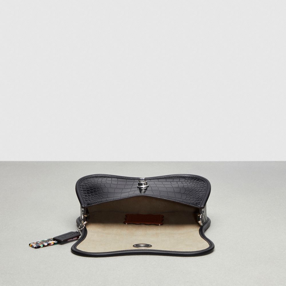 | Shell: Croc-Embossed Coachtopia Leather (at least 50% recycled from leather scraps) | Lining: Coachtopia Leather (at least 50% recycled from leather scraps) | Binding: Regenerative leather | Turnlock closure: 70% recycled acrylic plastic | Short strap: 70% recycled acrylic plastic | Long strap: Croc-Embossed Coachtopia Leather (at least 50% recycled from leather scraps) | Hangtag: 70% recycled acrylic plastic | Back slip pocket | Chain link strap with 6 1/4" drop | Adjustable crossbody strap with 21 3/4" drop | 9 1/2" (L) x 5" (H) x 2 1/2" (W)