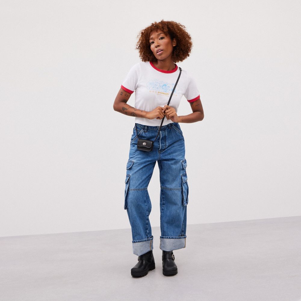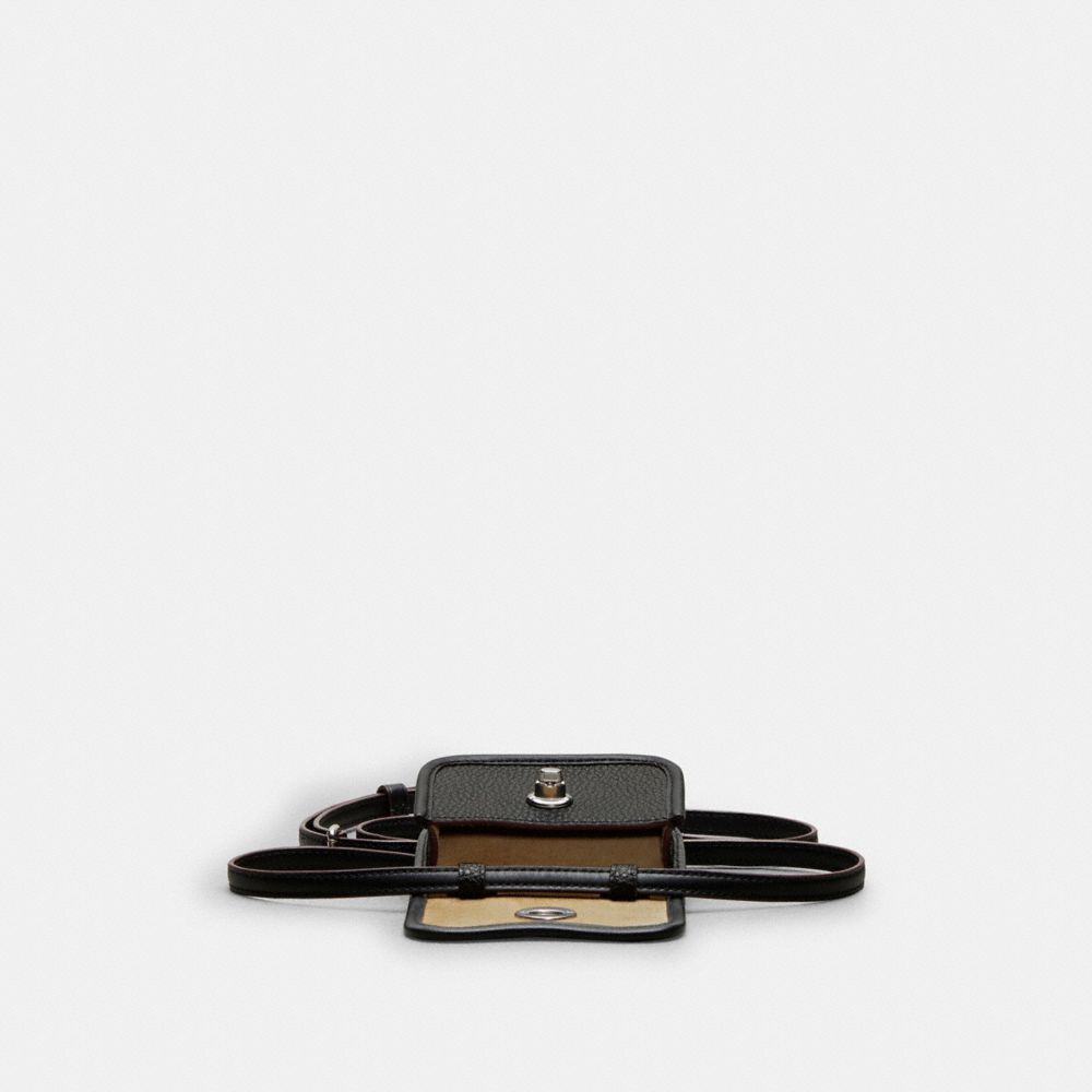 | Shell: Pebbled Coachtopia Leather | (at least 50% recycled from leather scraps) | Lining: Coachtopia Leather | (at least 50% recycled from leather scraps) | Strap: Regenerative leather | Binding: Regenerative leather | Thread: 100% recycled polyester | Labels: 100% recycled nylon | Turnlock closure with 70% recycled resin | Adjustable Regenerative leather crossbody strap with 24 3/4" drop | 4" (L) x 3" (H) x 1 1/8"(W)