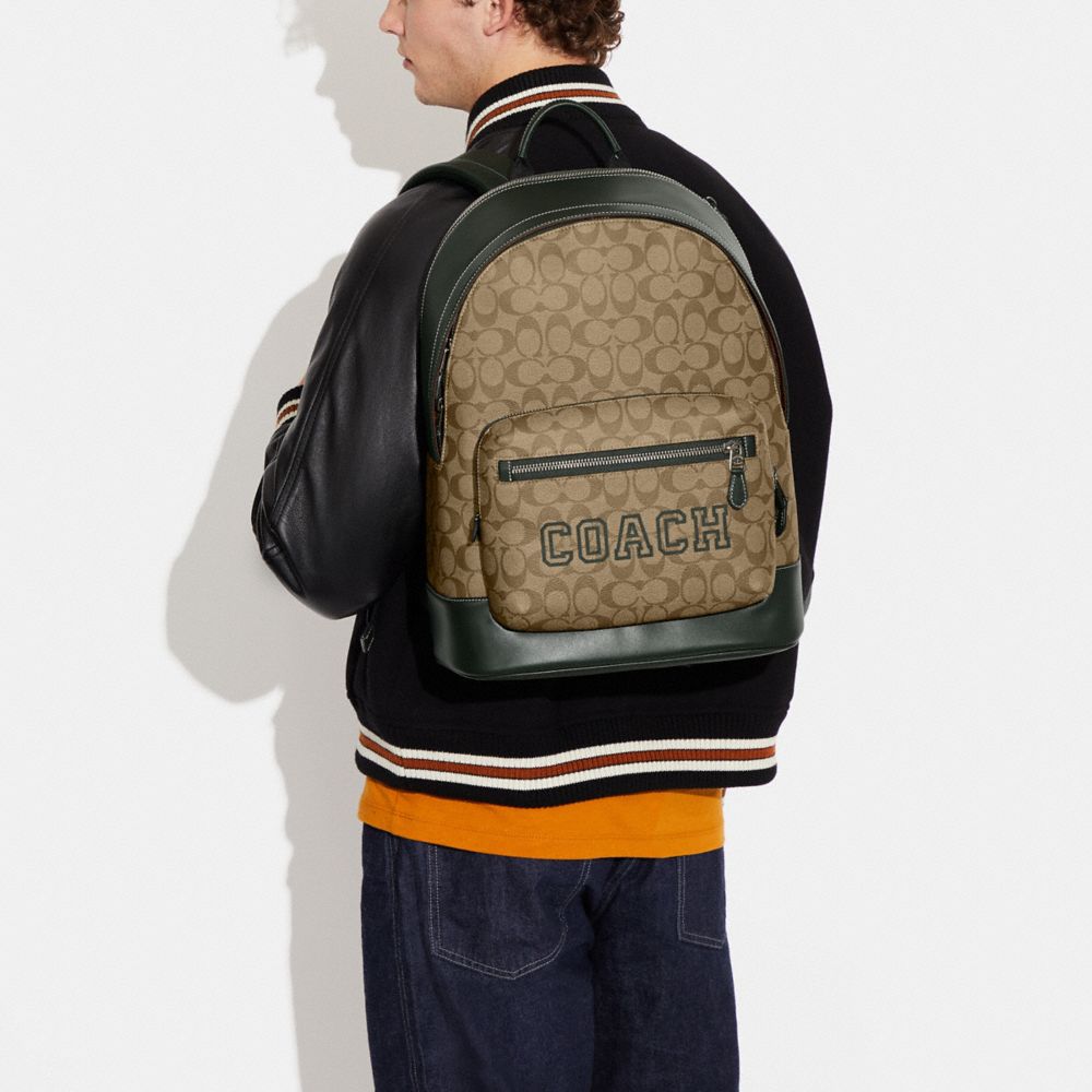 WEST BACKPACK IN SIGNATURE CANVAS WITH VARSITY MOTIF (COACH CE717)