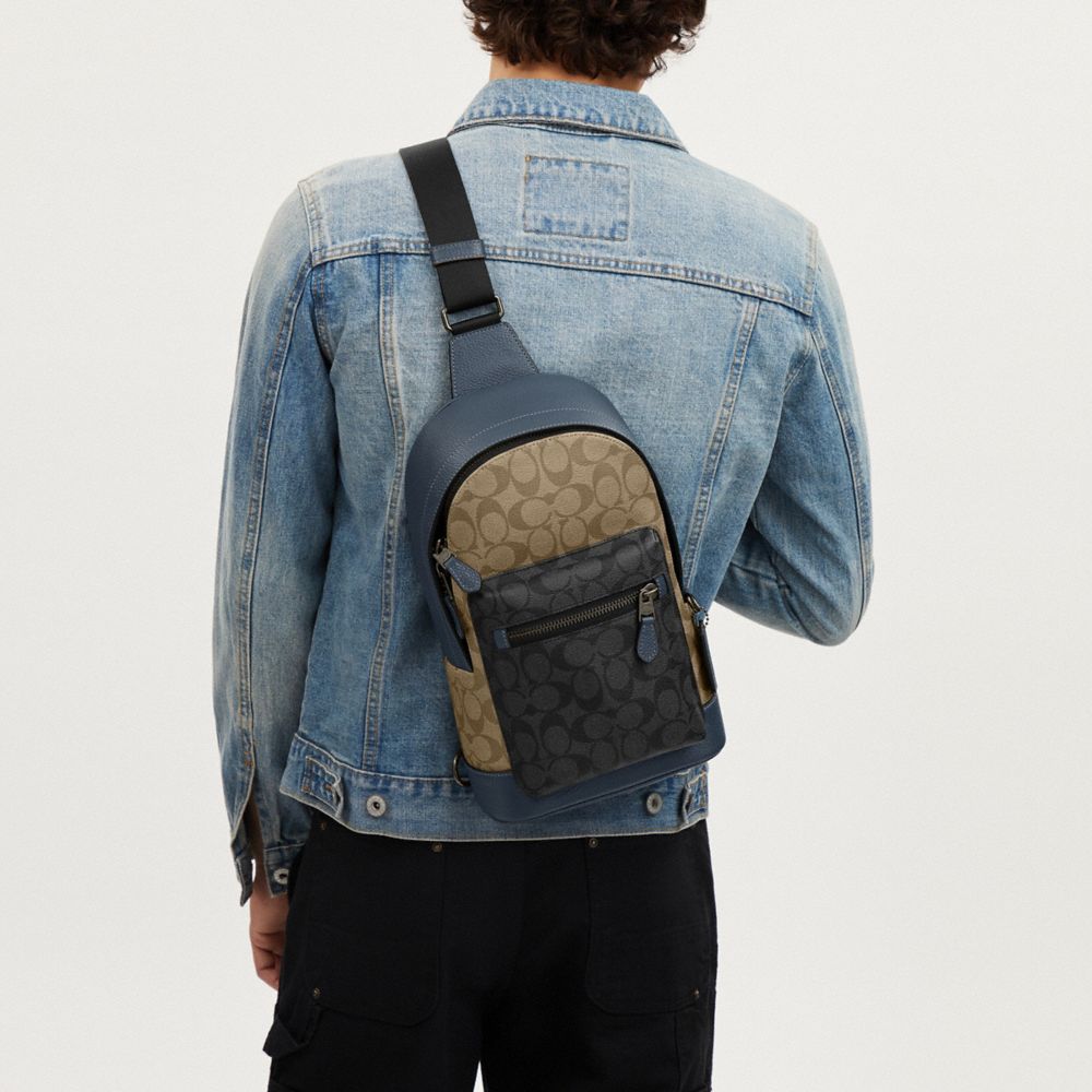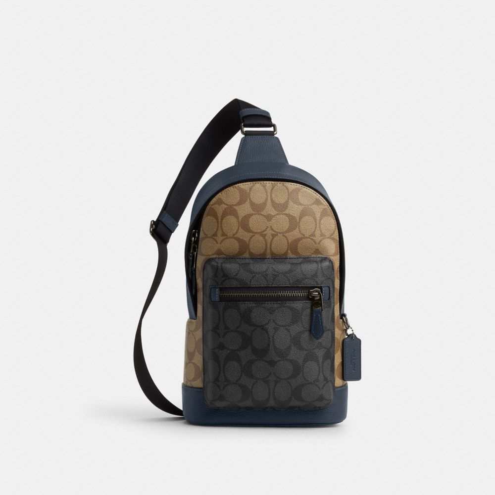 COACH FACTORY OUTLET PRICE CHART - CT813 - WEST PACK IN COLORBLOCK WITH SIGNATURE CANVAS - QB/CHAROCAL/KHAKI/DENIM