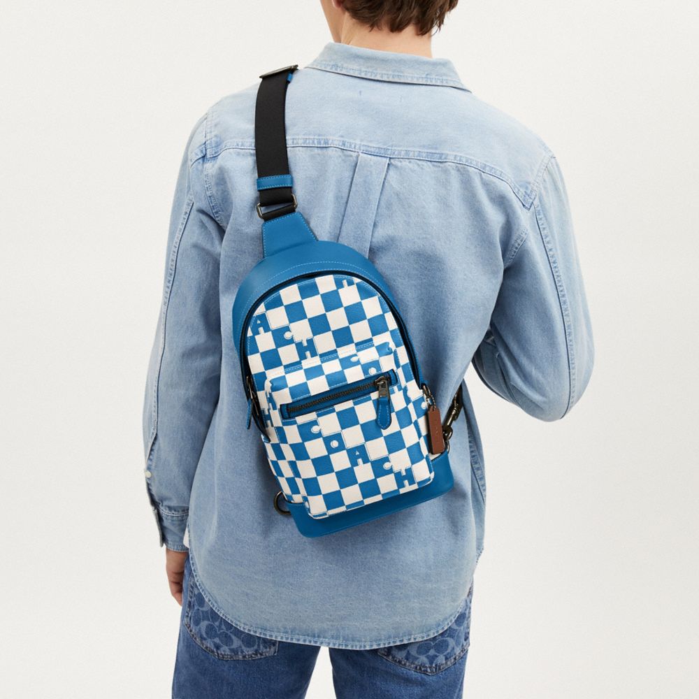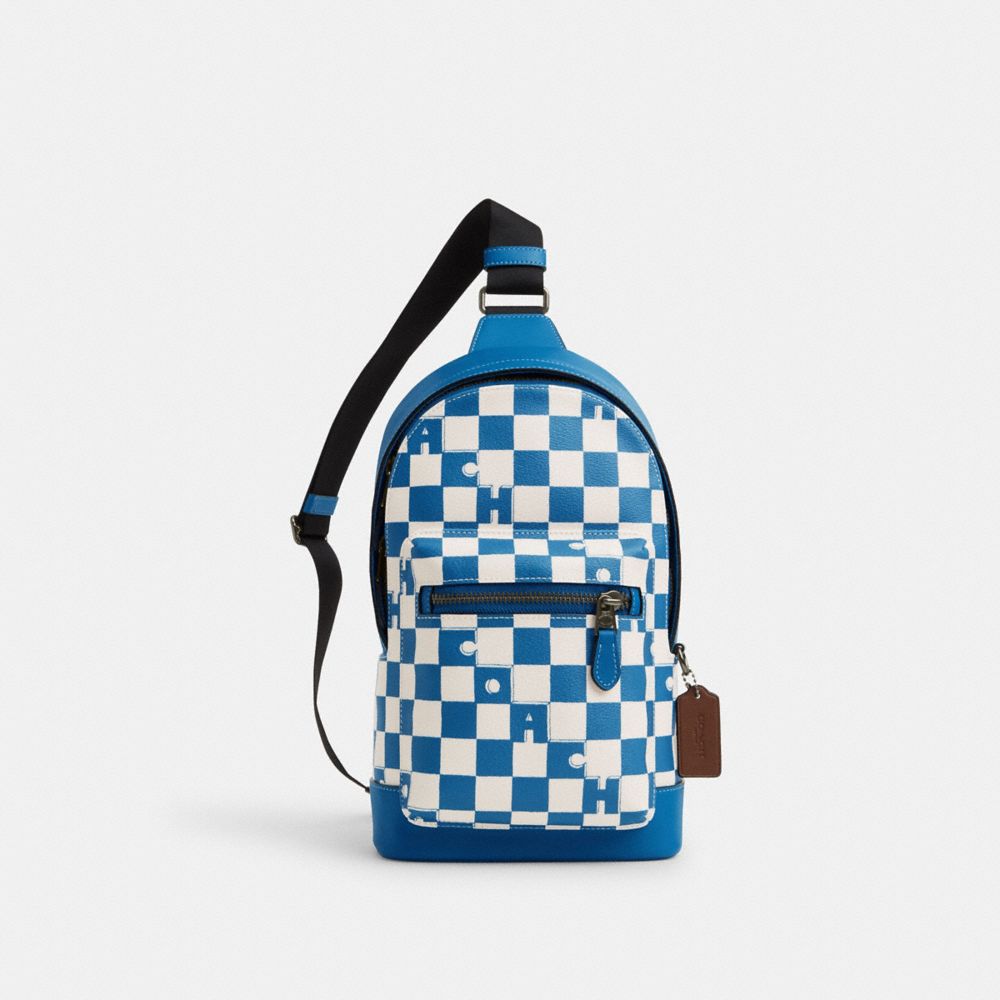 COACH FACTORY OUTLET PRICE CHART - CR294 - WEST PACK WITH CHECKERBOARD PRINT - BLACK ANTIQUE NICKEL/BLUE JAY/CHALK