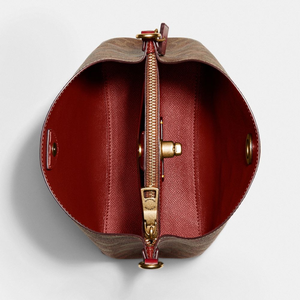 COACH FACTORY OUTLET PRICE CHART - C8389 - WILLOW BUCKET BAG IN SIGNATURE CANVAS WITH HEART PRINT - BRASS/TAN RED APPLE