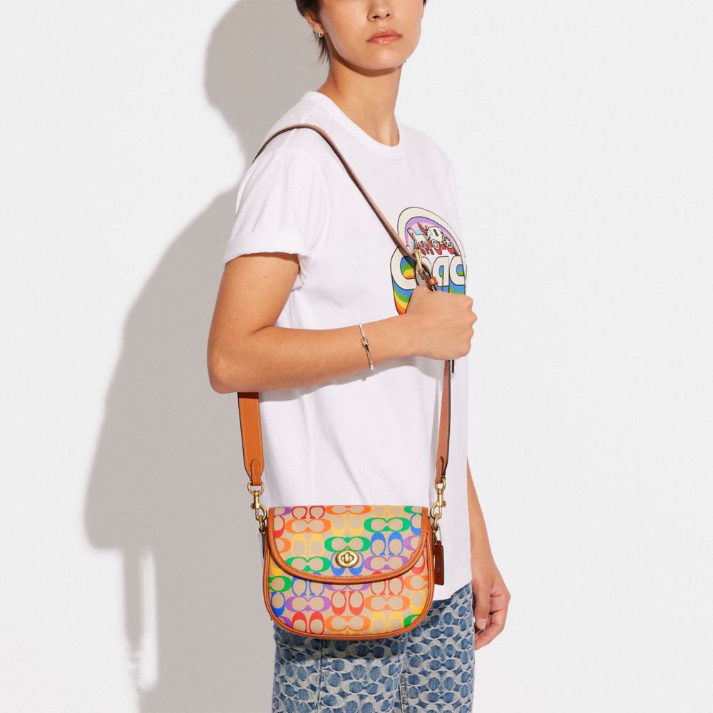 WILLOW SADDLE BAG IN RAINBOW SIGNATURE CANVAS (COACH CA101)