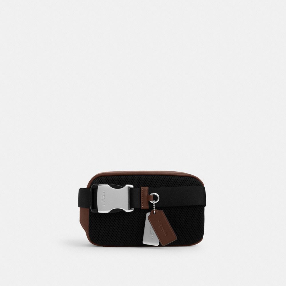 | Signature coated canvas and smooth calf leather | Two credit card slots | Zip closure, fabric lining | Adjustable strap with 51" length for wear at waist | 7 3/4" (L) x 4 3/4" (H) x 2" (W)|Style No. CR185|