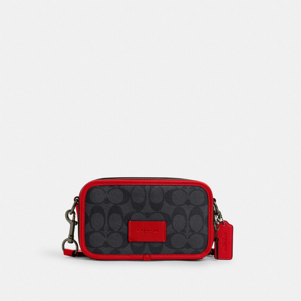 COACH FACTORY OUTLET PRICE CHART - CP185 - WYATT CROSSBODY IN COLORBLOCK SIGNATURE CANVAS - BLACK ANTIQUE NICKEL/CHARCOAL/BRIGHT POPPY