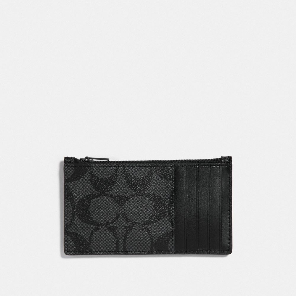 COACH FACTORY OUTLET PRICE CHART - F73225 - ZIP CARD CASE IN SIGNATURE CANVAS WITH PAC-MAN COACH SCRIPT - CHARCOAL/BLACK/BLACK ANTIQUE NICKEL