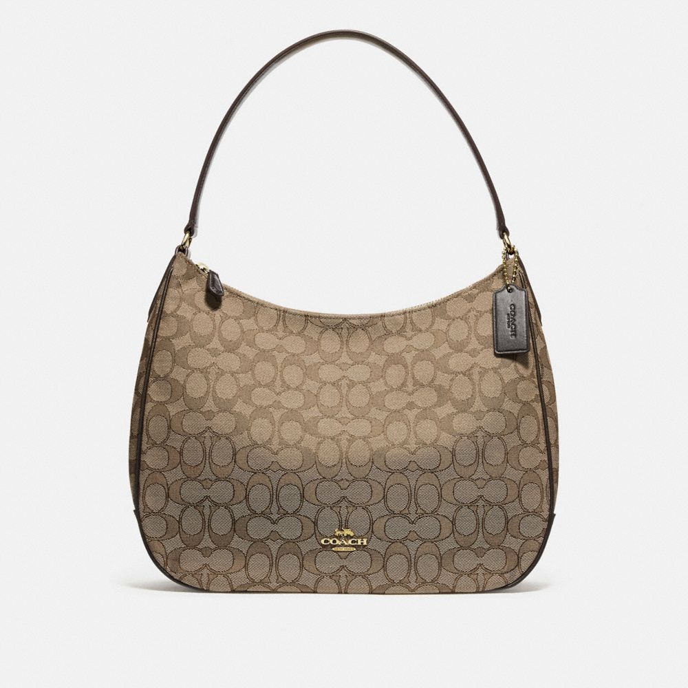 COACH FACTORY OUTLET PRICE CHART - F29959 - ZIP SHOULDER BAG IN SIGNATURE JACQUARD - KHAKI/BROWN/IMITATION GOLD