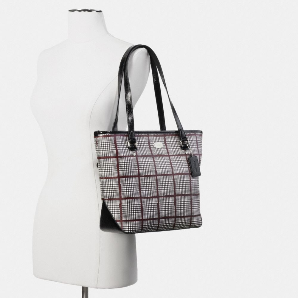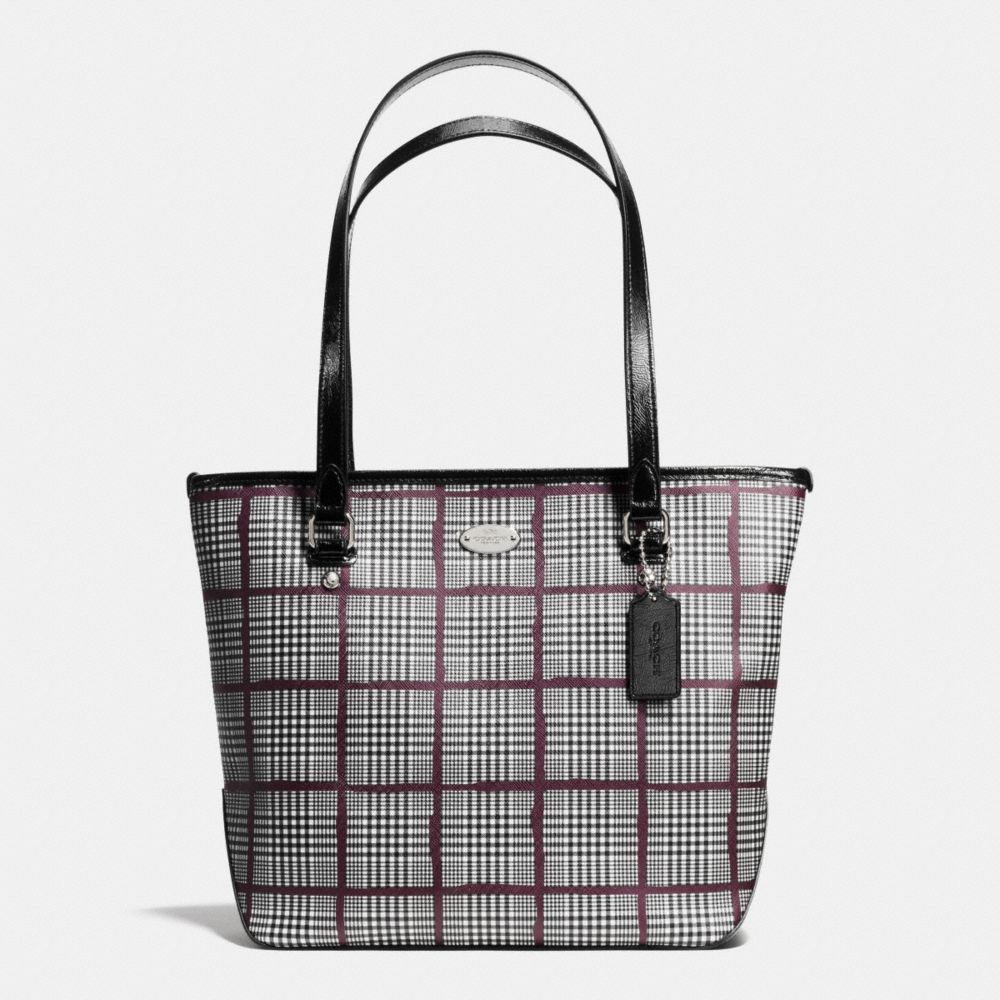 ZIP TOP TOTE IN GLEN PLAID COATED CANVAS (COACH F37057)
