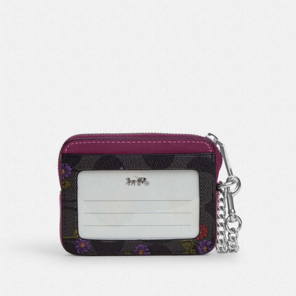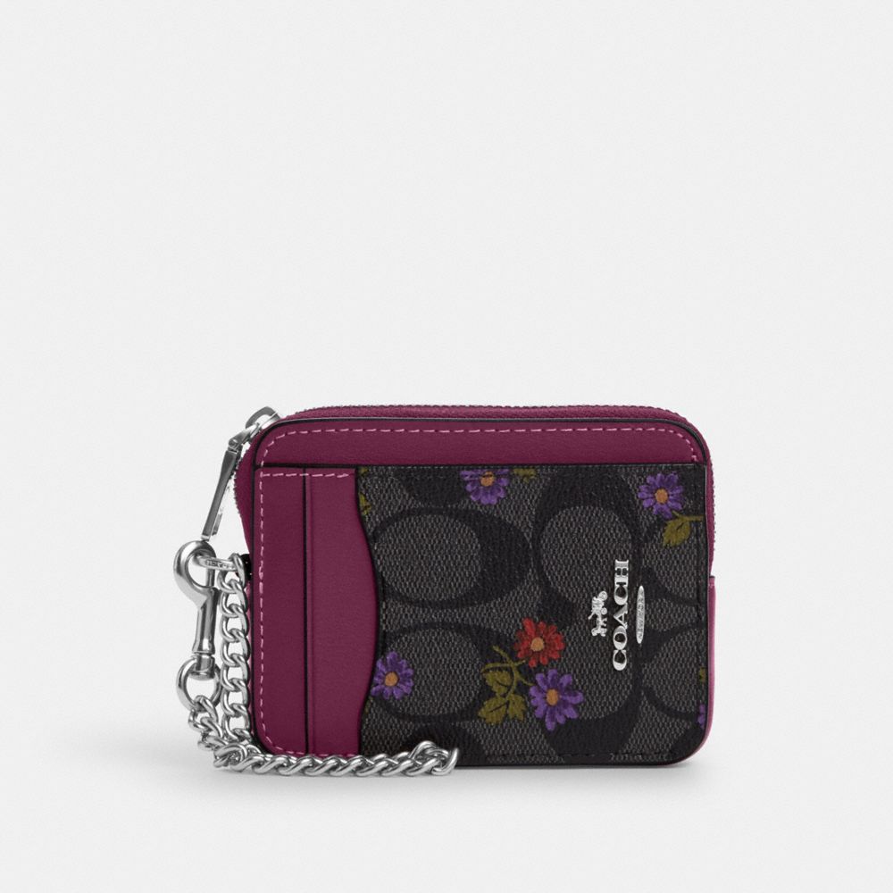COACH FACTORY OUTLET PRICE CHART - CM991 - ZIP CARD CASE IN SIGNATURE CANVAS WITH COUNTRY FLORAL PRINT - SILVER/GRAPHITE/DEEP BERRY