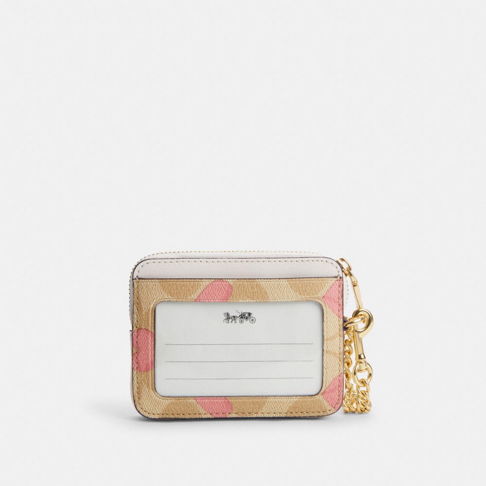 COACH FACTORY OUTLET PRICE CHART - CP467 - ZIP CARD CASE IN SIGNATURE CANVAS WITH HEART PRINT - GOLD/LIGHT KHAKI CHALK MULTI
