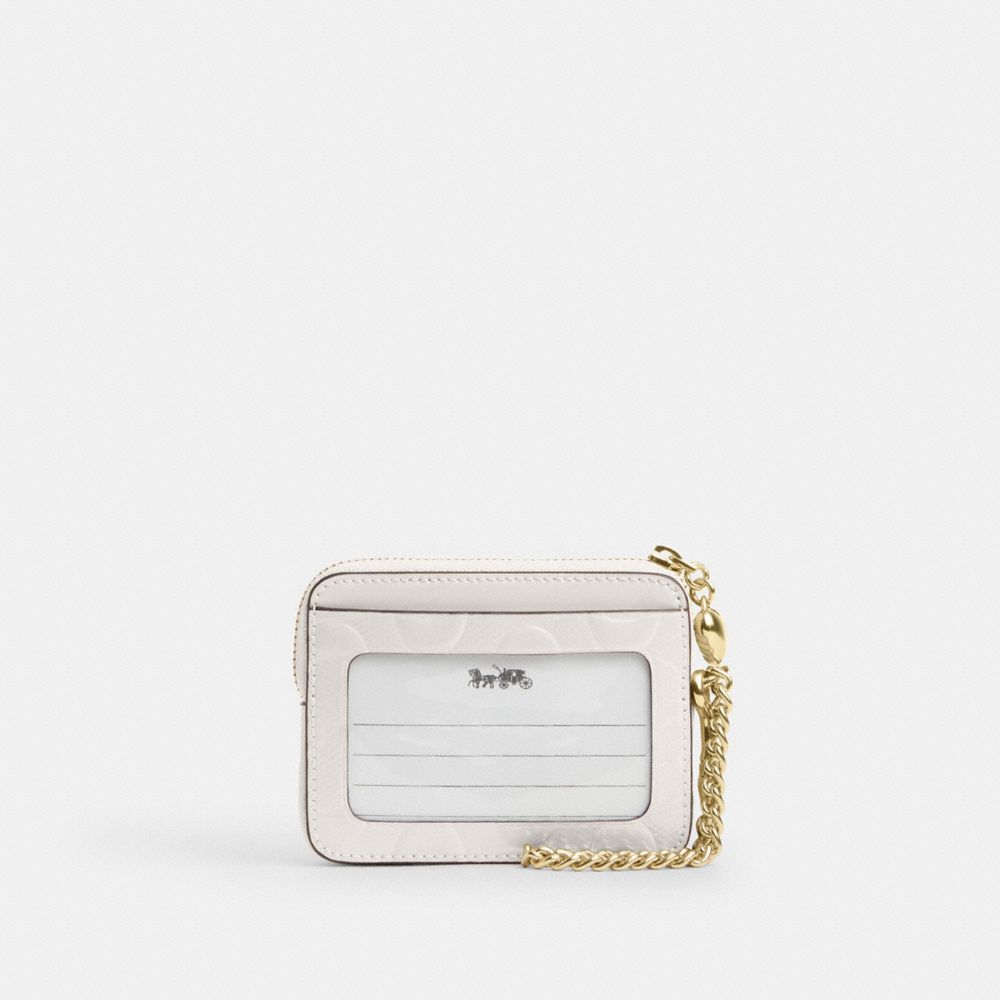 COACH FACTORY OUTLET PRICE CHART - CDQ15 - ZIP CARD CASE IN SIGNATURE LEATHER WITH HEART CHARM - GOLD/CHALK