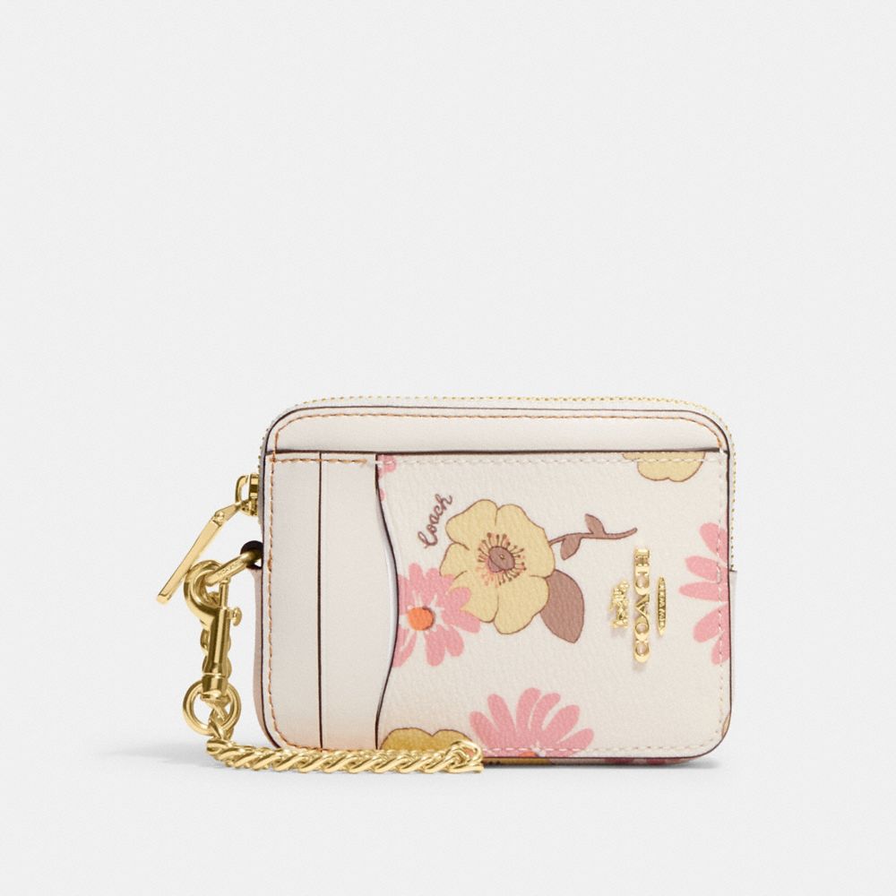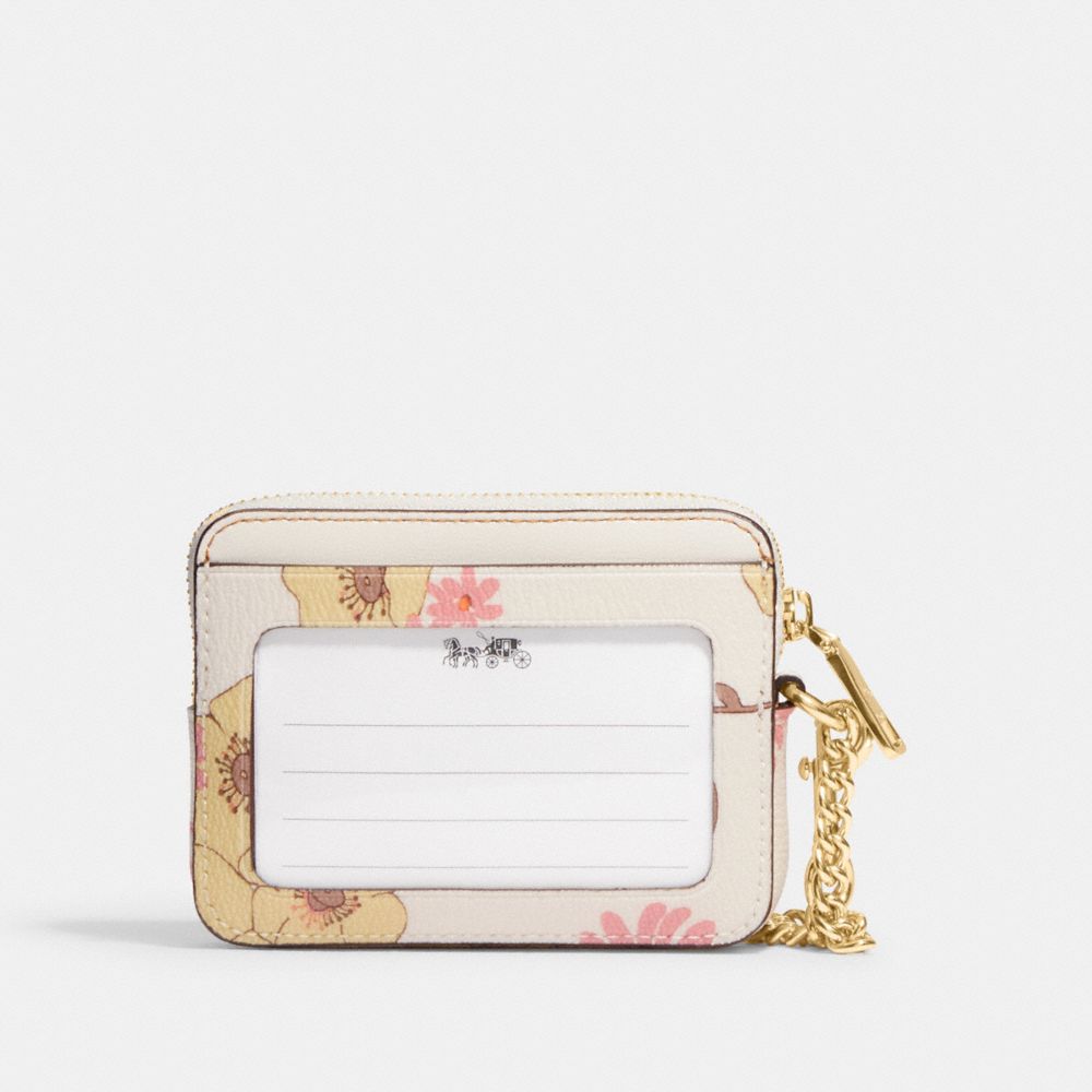 COACH FACTORY OUTLET PRICE CHART - CH650 - ZIP CARD CASE WITH FLORAL CLUSTER PRINT - GOLD/CHALK MULTI