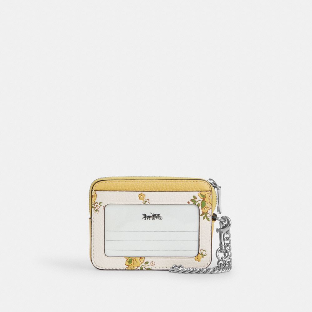 COACH FACTORY OUTLET PRICE CHART - CAU44 - ZIP CARD CASE WITH FLORAL PRINT - SILVER/CHALK MULTI