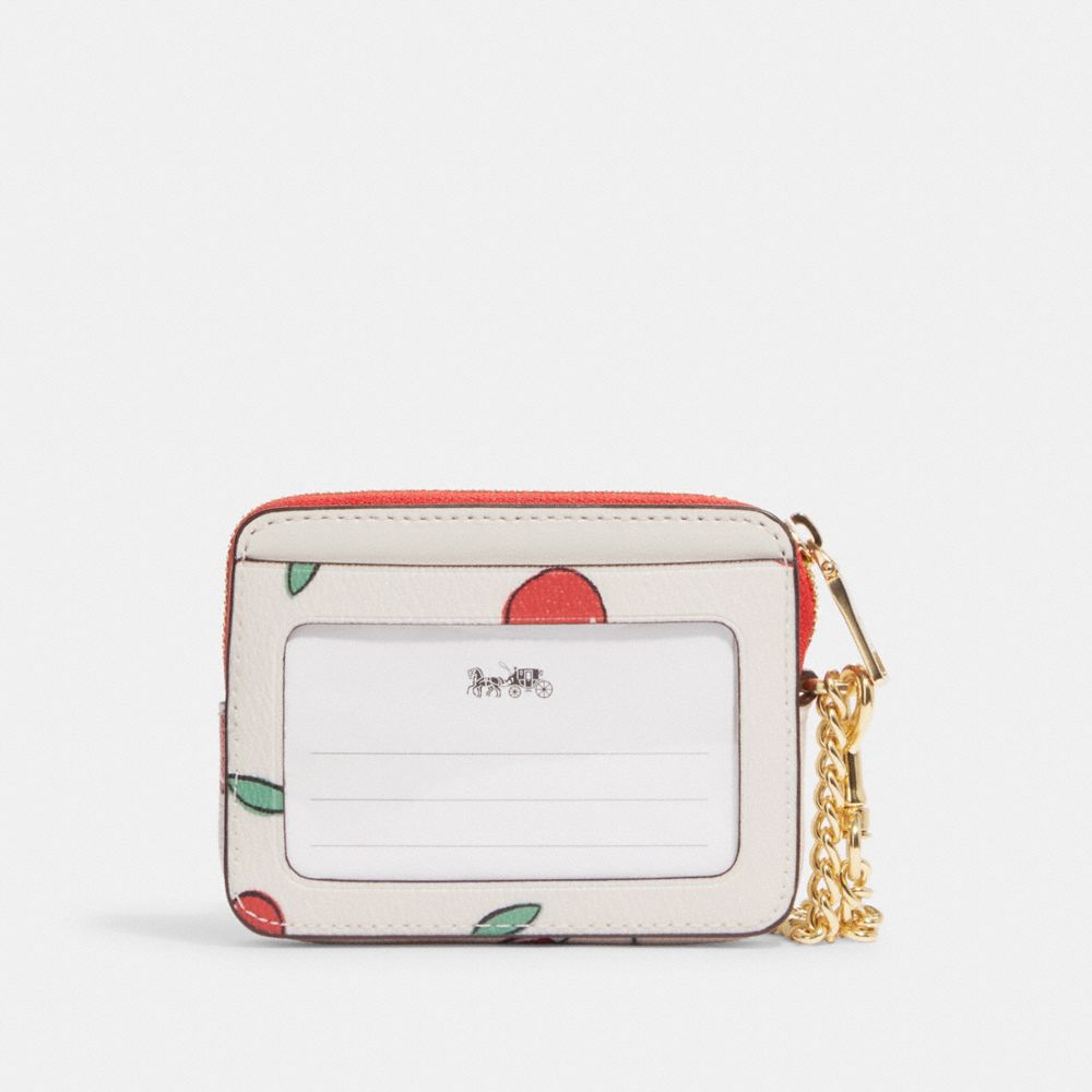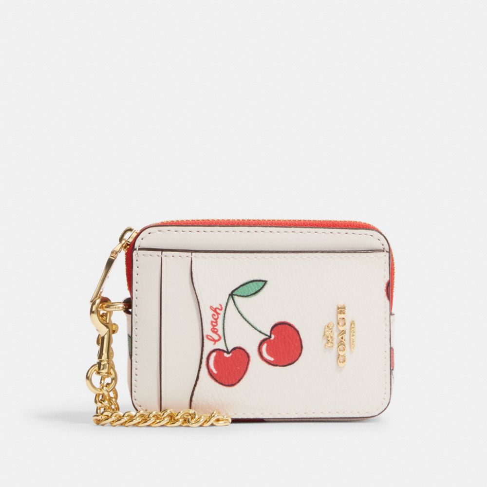 COACH FACTORY OUTLET PRICE CHART - CF409 - ZIP CARD CASE WITH HEART CHERRY PRINT - GOLD/CHALK MULTI