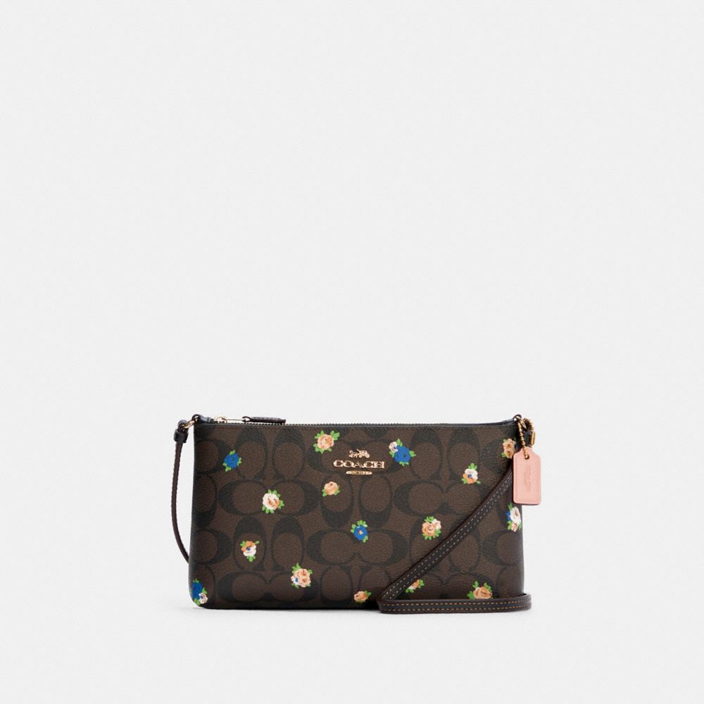 COACH FACTORY OUTLET PRICE CHART - C7425 - ZIP TOP CROSSBODY IN SIGNATURE CANVAS WITH VINTAGE MINI ROSE PRINT - GOLD/BROWN BLACK MULTI