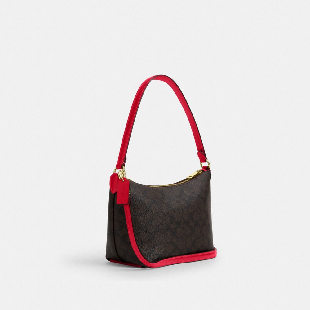 COACH FACTORY OUTLET PRICE CHART - CX610 - ZIP TOP SHOULDER BAG IN SIGNATURE CANVAS - GOLD/WALNUT/BOLD RED